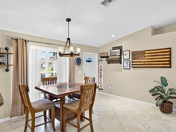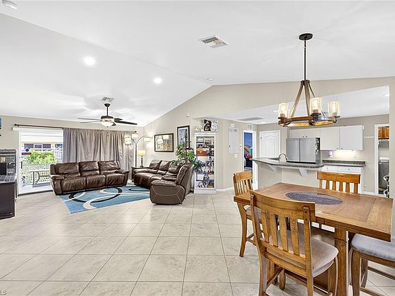 Move-in ready and immaculately maintained three-bedroom, two-bath home in North Cape Coral. This home has an open plan concept with vaulted ceilings, a 2023 roof, a 2019 air conditioner, newer reverse osmosis system, newer well pump, stainless steel appliances, a concrete slab in the backyard for the addition of your extra storage shed and a new powder-coated chain link fence. The flooring is a beautiful 20-inch tile laid out on a diagonal with hardwood flooring in the bedrooms. After a long day, go out into the privacy of your backyard oasis and relax in your spa, which comes with this beautiful home. The home is in Flood Zone X, so no additional costs for expensive insurance is required! The home is nearby Santa Barbara Boulevard and is convenient to restaurants and shopping. Make your appointment today to see this beautifully presented home and you won't be disappointed.