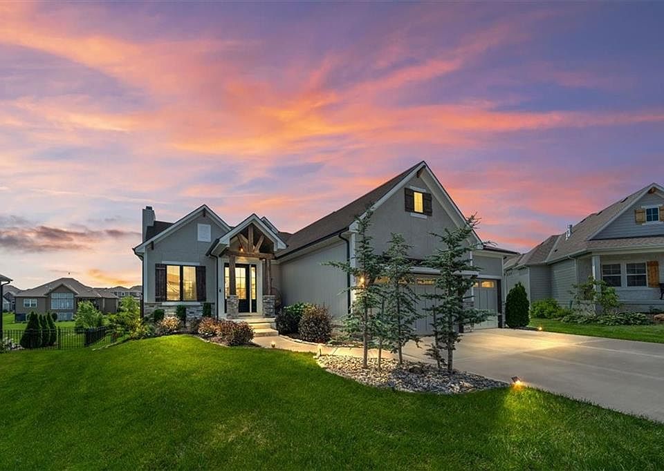 $40K PRICE IMPROVEMENT. MORE UPGRADES THAN NEW CONSTRUCTION. BUY NOW, MOVE IN TODAY, HOST TOMORROW. Why wait and pay more for new construction when this home delivers so much more. Enjoy custom window shades, a fully fenced yard, multiple outdoor patios with a firepit, and a screened-in composite deck, all on a quiet cul-de-sac with a large lot. Step inside this reverse one and a half story walkout in sought-after Winterset Valley, where upscale design meets everyday comfort. A dramatic stone-column entry and vaulted wood-beamed ceilings open to a bright, airy floor plan anchored by a striking stone fireplace. The gourmet kitchen features thick quartz countertops, a walk-in prep pantry, built-in workstation, custom mudroom, and designer finishes throughout. The main-level primary suite is a private retreat with vaulted ceilings, a spa-inspired bath, freestanding soaker tub, and a show-stopping walk-in closet. The lower level offers three additional bedrooms, a full bar, and a versatile flex space with sliding doors that works beautifully as a guest suite, gym, or home office. Outdoor living is unmatched with a covered screened-in deck featuring a built-in fireplace, a custom lower patio with firepit, and a spacious yard designed for entertaining. Located minutes from Longview Lake, golf, dining, shops, and the Rock Island Trail, with access to award-winning Lee’s Summit schools. Better than new, fully upgraded, move-in ready, and now priced to sell — this is the one you have been waiting for.