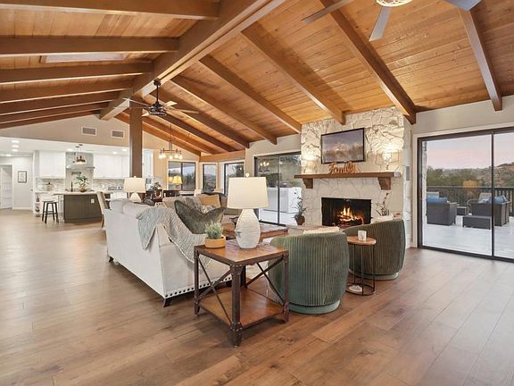 - Beamed Ceilings, Breakfast Bar, Ceiling Fan(s), Cathedral Ceiling(s), Separate/Formal Dining Room, Eat-in Kitchen, High Ceilings, Living Room Deck Attached, Open Floorplan, Pantry, All Bedrooms Down, Primary Suite