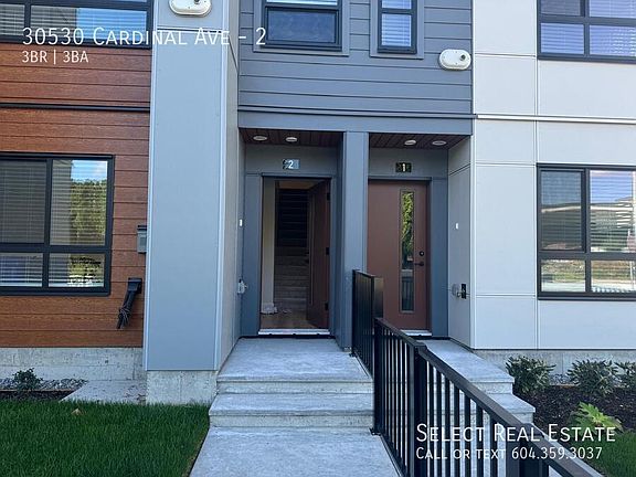 Address: Unit 2 - 30530 Cardinal Avenue Date Available: April 1st, 2025 Description This gorgeous 3 bed townhome is situated walking distance from Highstreet Shopping Centre and has many schools nearby, is located with direct access to Highway 1, and is a six-minute drive to Abbotsford International Airport. Amenities include a LOUNGE, CLUB HOUSE, KITCHEN, VIRTUAL MEETING ROOMS, INDOOR KIDS PLAY AREA & FITNESS CENTRE Lease Details Lease duration: 1 Year Deposit: Months Rent. Pet Deposit: N/A No Smoking Property Details Bed: 3 Bath: 2.5 SQFT: 1317 Pet Details Pets(Yes/No): No Type Allowed: None Number: 0 Size Restriction: N/A Exterior Details BBQs allowed(yes/no): Yes Parking type and how many: Driveway + Garage (3 spaces total) Yard Usage: Small Private Yard in Front Yard fully fenced: Yes Shed Or Shop Usage: No Appliances Included Fridge: Yes Range: Yes Dishwasher: Yes Microwave: Yes Washer/Dryer: Yes Shared Laundry: No Pay Laundry: No Fireplace: No Air conditioner: Yes Standalone freezer: No Utilities Gas: 100% Tenant Hydro: 100% Tenant Internet/Cable: 100% Tenant Water, Sewer, Garbage: 100% Landlord Utility Type Heat Source: Forced Air Septic/Sewer: Sewer Water Source: City Tenant Responsible for Septic pumping: No Strata Age Restriction: NA Storage Locker: NA Move-in/out Fee: NA Move in Scheduling: NA