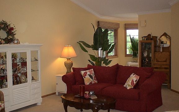 Charming and beautifully maintained 2 bedroom, 2 bath ranch townhome on prestigious Oak Club Golf Course! Vaulted ceilings & skylights throughout kitchen & living room. Gas fireplace in living room. Full, fin. basement to incl. a family room, sitting/office area & exercise room. Bsmt plumbed for additional bath. Delightful brick patio with trellis. Assn. covers snow, total lawn care & ext. maint. Move-In Ready!