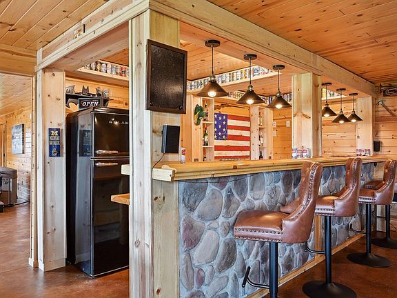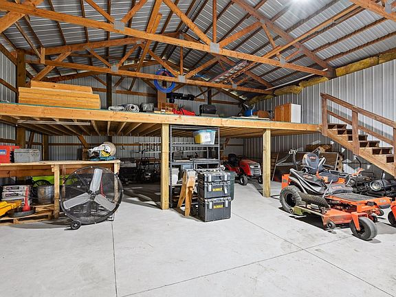 Lakeshore, acreage & an outbuilding w/in an hour of the metro! This 5BR/4BA rambler on 4.5 acres features vaulted ceilings, large kitchen, stainless steel appliances, walk-in pantry, laundry room & 3 bedrooms upstairs. The walkout lower level has 2 more bedrooms, a family room w/ gas fireplace & 16 foot wet bar, plus a game room w/hot tub. Outside is acres of space plus a deck & patio to enjoy wonderful lake views. And how about an outbuilding! The 30x40 pole shed is complete with concrete floors & a mezzanine level at the back of the building. 3 different garage doors heights will ensure you can fit all your toys & equipment inside! The 14x38 shop area has all the space & amenities you need - high speed internet, electrical, heat & cable. All in addition to the finished 3 car garage attached to the home! With 2 driveway entrances, backup generator, indoor workshop, & too many other updates to mention, you won't want to miss your chance to call this home your own! No detail was missed!