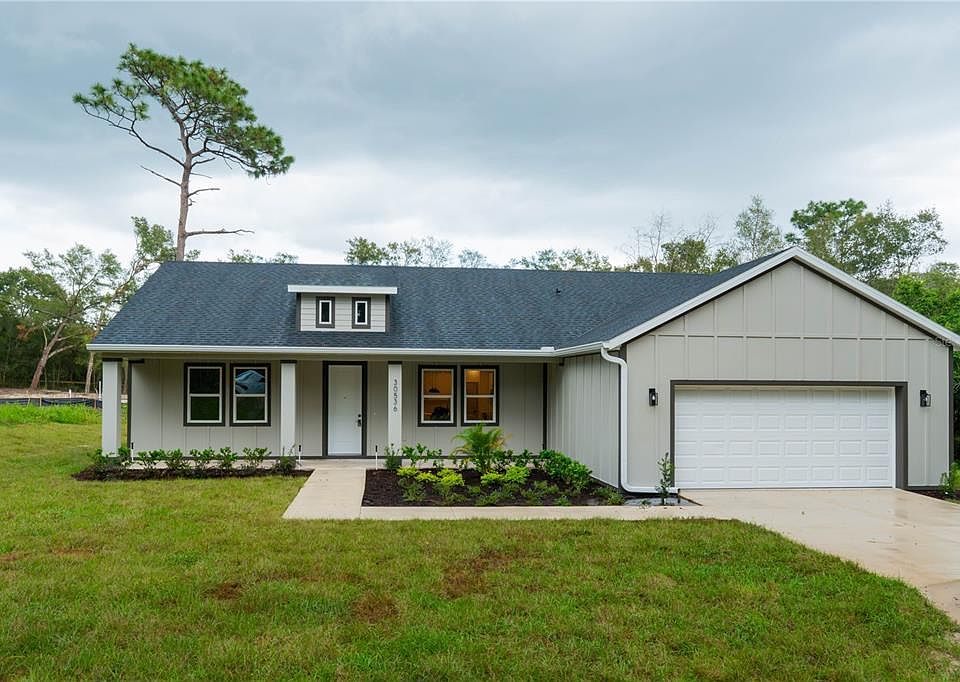 One or more photo(s) has been virtually staged. Welcome home to this beautifully crafted 4-bedroom, 2.5-bathroom new construction residence in sought-after Sorrento, Florida. Sitting on a large lot with no neighbors to the right, this property offers both privacy and space; a rare find in today’s market. Step inside to find a bright, open-concept floor plan featuring luxury vinyl plank flooring throughout. The modern kitchen boasts stainless steel appliances, upgraded finishes, sleek cabinetry, and a spacious island perfect for entertaining. The primary suite includes an en-suite bathroom and generous closet space, while the additional bedrooms provide comfort and flexibility for guests or a home office. Enjoy quiet evenings on your covered patio, surrounded by the natural beauty of Mt. Plymouth. With no HOA restrictions, you have the freedom to truly make this home your own; bring your boat, RV, or build your dream outdoor space. Conveniently located near major highways, shopping, dining, and outdoor recreation, this stunning new home combines modern design with peaceful living. Don’t miss your chance to own brand-new construction in this desirable area!