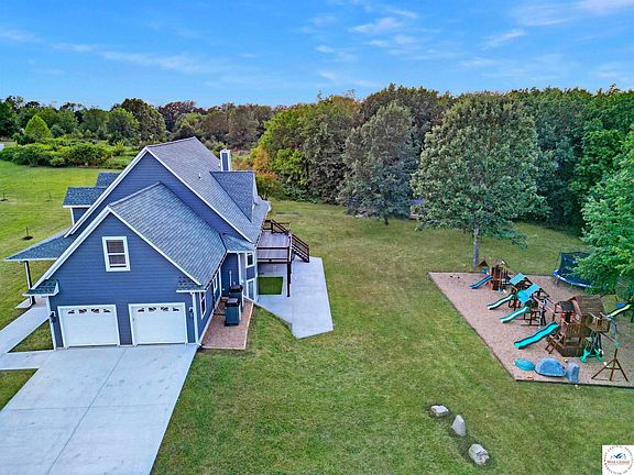 Welcome to this stunning home offering timeless curb appeal, a full covered front porch, and elegant modern farmhouse touches throughout. Situated on 3.20 peaceful acres, this beautifully updated six-bedroom, three-and-a-half-bathroom estate features 4,508 square feet of thoughtfully designed living space that is perfect for both entertaining and everyday comfort. Step inside to an impressive open-concept layout with soaring ceilings, abundant natural light, and a spacious great room that flows seamlessly into a gourmet kitchen. The kitchen is a true showpiece with gorgeous countertops, premium stainless steel appliances, custom cabinetry, and high-end finishes throughout. A dedicated home office with built-in cabinetry provides the perfect space for remote work or study. The home also includes a bonus room that can serve as a home gym, play room or storage. The finished lower level has a second full kitchen, a bar area, a spacious room, and a dining space. The home’s layout provides exceptional flexibility for any lifestyle. Step outside to your private outdoor retreat complete with a custom-designed playground that includes multiple playsets, slides, swings, and a trampoline. The large backyard is surrounded by mature trees, offering both privacy and space to relax or entertain. A chicken coop and raised garden beds add a touch of country charm and make it easy to enjoy farm-fresh eggs and homegrown produce. Additional highlights include an attached two-car garage, a spacious driveway, and a private setting that offers a sense of seclusion while still being conveniently located just minutes from town amenities. This exceptional property offers the perfect blend of style, space, and functionality. Schedule your private showing today and experience everything this move-in-ready home has to offer.