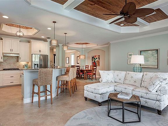 The beautiful Isabel floor plan. Gracious Florida living with a lovely and private lanai, pool and spa. The outdoor living space includes a summer kitchen, custom pavers and gorgeous view. Exceptional in every way. Beautiful entry area with a security key system. Stunning living area, beautifully furnished, bright and entertaining. Heavily upgraded kitchen area with stainless appliances, professionally redecorated, countertop appliances with granite counters and stone backsplash. Lovely wood inserts in the ceilings throughout the living space. Bright and light guest bedrooms with coastal accents throughout. Oversized master suite with walk-in closets. Spacious and open laundry area. This Lennar built home is conveniently located to the new shopping area on Rt 41 with easy egress from award-winning Fiddler's Creek. Exceptional Club, Spa and Fitness center, Pickleball, Tennis and so much more. All you could ask for in amenities and minutes away from the shopping, dining and water sports of both Old Naples and Marco Island. The best in South Florida living.