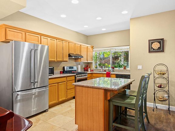 Discover serene living in this 3-bedroom, 2.5-bath home, uniquely tucked away at the end of a long private driveway. Step inside to find an open-concept floor plan and high ceilings. Enjoy cooking in the spacious kitchen with a gas range, granite counters and prep island with seating for 2. The sink overlooks your own peaceful oasis. The fully fenced backyard with tiered landscaping make this space ideal for relaxing, entertaining, or secure fun for the little adventurers in your life. Upstairs also enjoys high ceilings and a primary suite with a walk-in closet and dual sinks, and 2 more bedrooms and a full bathroom. PLUS there is an indoor laundry room and a 2-car garage. Serene, private living awaits...come make it yours!
