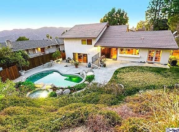 This gorgeous and cozy Tri-level home which offer privacy for the bedrooms and short sets of stairs running upward to a master bedroom and two bedrooms with a balcony and going downward towards the forth bedroom with an open sliding door to the swimming pool which has its own bathroom that can be used as a second master bedroom, kids playroom or additional family room. The main level of the house contains an impressive living room with a high ceiling and fireplace, formal dining room opened to the back yard, kitchen and family room that has access to a stunning pool, spa, fire pit and the nice backyard. You must see this house. 4 bedroom and 3 bath
