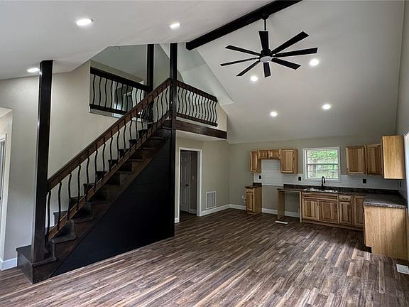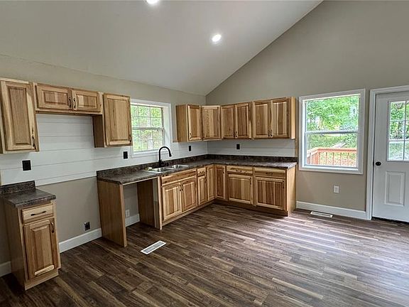 Nestled in the woods on 10.8 +/- private acres, this fully remodeled 3 bedroom, 2 bathroom home has been thoughtfully updated from top to bottom. The open concept living room and kitchen features vaulted ceilings and new cabinets. The main level offers two spacious bedrooms and a bathroom, while a charming staircase leads to a loft with an additional bedroom and full bath, ideal for a private master suite or guest quarters. There are two brand new decks, one off the front and another on the side—perfect for relaxing or entertaining. Additional highlights include a new HVAC system and new vinyl siding. Whether you're starting a family or seeking your own peaceful escape, this home checks every box. Don't miss your chance to own this move-in ready gem in a gorgeous country setting!