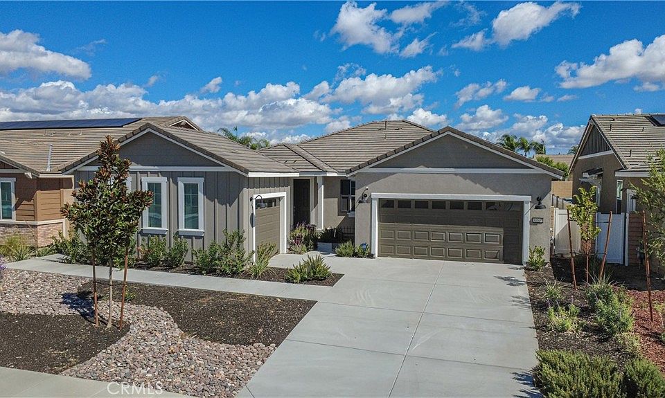 Looking for a home with a TRUE Next Gen suite? This beautiful 'single story' in the heart of Menifee's desirable Quartz Ranch community offers the perfect setup. With a spacious 3 car garage and Private Next Gen Suite complete with it's own kitchen, living area, bedroom and entrance. It's ideal for multigenerational living or an excellent rental opportunity. "SOLAR" is paid in full! Energy efficiency and cost savings. The main home features laminate flooring thru out and an open-concept kitchen with an over sized Island with popular quartz countertops. Appliances are stainless steel, 5 burner natural gas stove, and Costco size walk in pantry. Sliding doors open to a patio in the rear yard, great for outdoor dining. Custom shades thru out. The Primary bedroom features a spacious walk in closet, and the en-suite bathroom offers a separate soaking tub, walk in shower, and dual sinks. This property combines modern design, functionality, and income potential, all in one. The exterior is designed with drought tolerant landscaping on efficient drip irrigation. Low association dues, a well maintained community park and schools within walking distance for convenience and lifestyle.