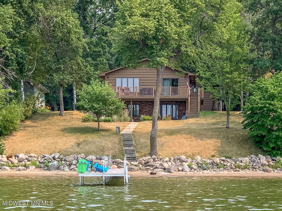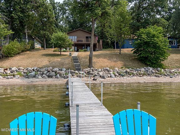 Take in those amazing Otter Tail Lake sunsets from your private deck on this 2+ BR walkout home. Great elevation with only a few easy steps down to the dock. Nicely updated kitchen showcasing premium ash cabinets, SS appliances, & corian countertops. Expansive lakeside windows in living room & lakeside deck off kitchen w/amazing views . Main floor also features 2 bedrooms, laundry, & full bath w/custom tile shower. Lower level has huge family room w/cozy brick wood-burning fireplace, full bathroom, & possible 3rd bedroom if you add egress window. Walk-out LL leads to huge patio. 34x26 garage has an unfinished upper level w/plenty of room for additional bedrooms & rec room or man cave. Spacious lot w/shade trees. Nice sandy swimming and gorgeous sunsets await you on Otter Tail lake.