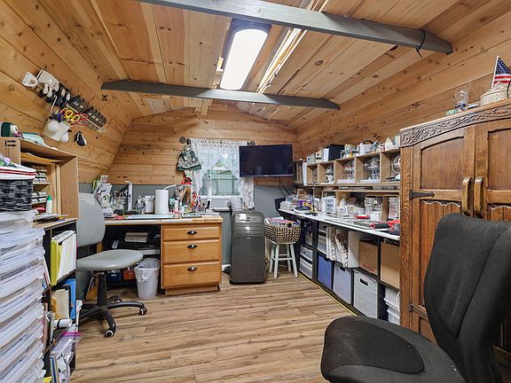 Situated among the pines, this custom-built 3 bedroom, 2 bath home offers the perfect blend of charm and comfort. A large, welcoming covered front porch sets the tone, leading into an open floor plan with vaulted ceilings, updated interior paint and flooring, and expansive view windows that fill the home with natural light. The cozy wood-burning stove creates a warm and inviting atmosphere, while the spacious kitchen is a chef's delight with newer appliances, a center prep island with sink, and a breakfast bar. Additional features include an indoor laundry room with sink, a covered back deck ideal for entertaining, and an adorable she-shed complete with its own porch, power, and sink—perfect for crafting, hobbies, or a creative retreat. Thoughtful upgrades such as generator readiness, new gutter covers, and RV parking with 30-amp service add convenience and peace of mind. A beautiful mountain retreat with modern comforts, this home is ready to be your sanctuary.