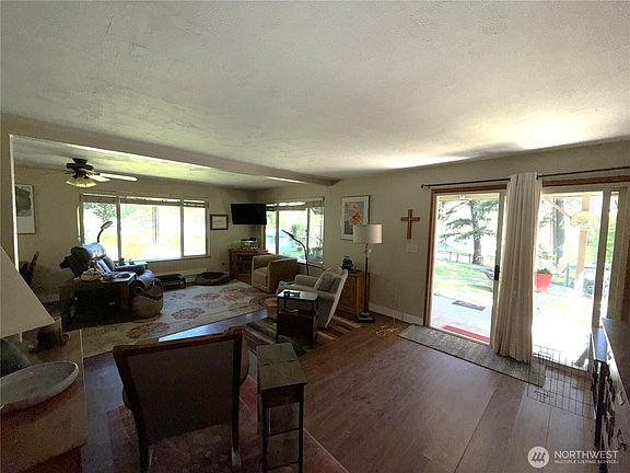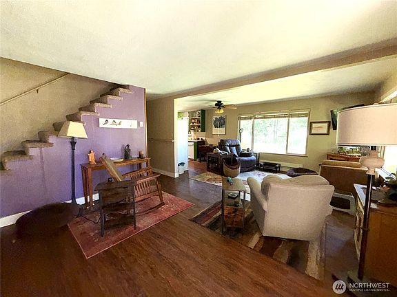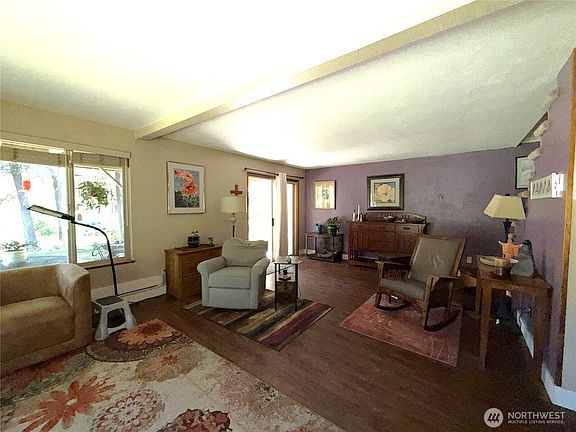 Absolutely neat as a pin! Both the house and the yard are immaculate. This solid frame-built 1 1/2 story home has a large balcony off the bedroom overlooking the well-tended flower beds. The main floor features a large living room, family room, primary bedroom and laundry. The garden and yard are shaded by mature trees. An attached two-car carport offers convenient access no matter the weather.