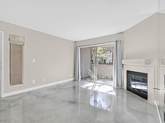Great remodeled condo in gated community. This 2 bedroom, 2 bath with open floorplan features new interior paint. The cozy living room has a fireplace and mirrored wall. The kitchen comes with stainless microwave and stove, and plenty of cabinets. The primary bedroom suite features a walk-in closet that also has wall mirror, and double sinks in the bathroom. Easy to maintain surfaces throughout, modern concrete flooring stained and epoxied flooring. Thousands of dollars in custom window coverings. Sun screens help keep the condo cooler with more privacy. Open spaces outside give the feel of a much larger, open and bright property. 2 pools and a gym in the clubhouse included in the HOA. Your new home is ready for move-in today!!
