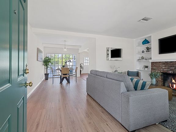 Residing in a sought-after neighborhood of Burbank, a charming 1,233-sqft home newly enhanced with fresh interior paint, beautiful flooring throughout & a resurfaced driveway makes for the perfect home! A fresh & airy living room with built-ins & a cozy brick fireplace first bids welcome before leading into a lovely dining room. With earthy stone countertops adorning the neat built-in cabinetry, the bright kitchen offers stainless-steel appliances plus outside entry to the detached garage. Down the main hallway is the main bathroom & well-sized bedrooms fitted with large closets. The primary bedroom houses an en-suite bathroom plus a convenient laundry area & enjoys exclusive access out to a shared patio deck awashed in sunshine. Large grassy spaces are shaded by a magnificent tree in this backyard oasis to create a wonderful entertaining space. A superb home to enjoy day-in & day-out!