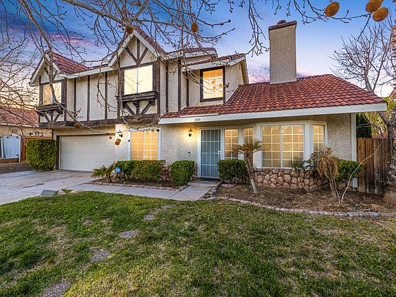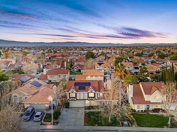 Beautiful 2 story home in West Palmdale with owned solar near shopping, schools, public parks and freeway access. This property features a landscaped front yard with mature trees. Inside you will find an open floor plan perfect for entertaining. There is a dual sided fireplace in the living and family room. The kitchen has been updated with dark cabinets, stainless steal appliances, gorgeous white counter tops and tons of storage. Upstairs you will find all 4 bedrooms and 2 full bathrooms. In the rear yard there is a covered patio, spacious yard with a shed, putting green and additional storage space. In addition to paid-off solar this home also features, Wi-Fi enabled smart switches in high traffic areas (porch lights, stairs and hallway, plus kitchen and dining room), Ring security cameras and doorbell already in place, and the garage is EV-ready with space and electrical already wired for an in-home Stage 2 charger. This is a high-tech dream home! This house is a MUST see!