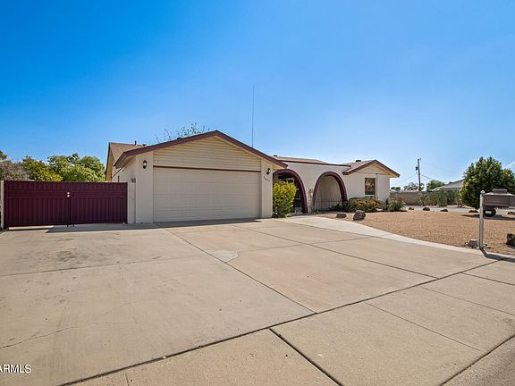 This is it! Be the proud owner of this charming 4 bed, 2 bath corner lot property nestled on a cul-de-sac in Phoenix! Discover a perfectly-flowing layout showcasing neutral tile & wood-look floor, New plush carpet in all the right places, & soothing palette throughout. Cozy-up during chilly evenings by the impressive brick fireplace in the family room. The well-appointed kitchen boasts wood cabinetry with crown moulding, KitchenAid appliances, & a pass-through window complete with a breakfast bar. Primary bedroom features a private bathroom & generously-sized closets for added convenience. RV Gate with RV parking and no HOA!! So many extras with this home! The roof is only a few years old & water heater is under a year old .. All new interior paint too! The quaint backyard is a blank canvas waiting for your personal touch! A deal like this won't last! What are you waiting for!! Come see it today!