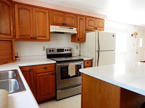 County Setting. This home was built for the owner and they have lived here for the last 60 years. Main floor is has an open floor plan and a walk-in shower. There is an extra garage and a full basement. The attached garage has a convenient breezeway entry to the home. The kitchen features a large work island with stools (included) and an additional pantry cabinet. Nice southern exposure. The Roof is @ 8 years old and appliances are included.