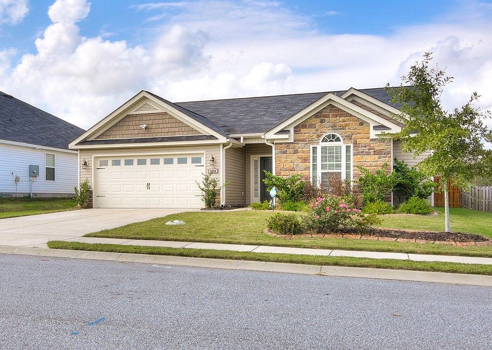 Carefully Crafted by Bill Beazley in 2018, this Ranch-Style is Complete & Move-In Ready! This well-liked Glenbrooke II plan, is in like-new condition with many upgrades at your fingertips including a New Privacy Fence, Fresh Paint, Blinds Installed & Newly Tiled Bathroom Floors. Expansive Foyer has Hardwoods open to the Great Room with High Ceilings & an Electric Fireplace. Fall in love with the Large, Open Dining room & Kitchen complete with New Water-Resistant Laminate, Tile Backsplash, Stainless Steel GE Appliances, Granite, & Breakfast Bar. Arrange an Office, Playroom, or Home Gym in the Sunroom full of Natural Light as you overlook the Flat Backyard. Unwind in the Owner's Bedroom complete with a Private En Suite, Garden Tub, Dual Vanities, & a Large Walk-in Closet. Gain Peace of mind with a 10 yr Structural Warranty, RING Video Doorbell & Security System Equipment, & Automatic Sprinklers. Resort-style Neighborhood Amenities include Sidewalks & Close Fort Gordon Gates 1 & 2! Tenant pays for all utilities ,Maintains all landscape and owner pays for all pesticides and termites service.