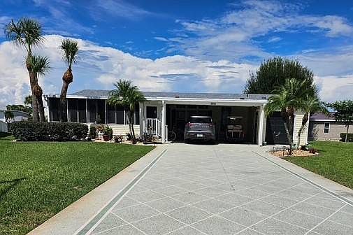 Spacious and beautifully updated 1,568 sq ft home in a welcoming 55+ community. This residence comes tastefully furnished and includes a golf cart for added convenience. Recent upgrades include new roof (2022), new windows (2025), and new lanai windows, along with attractive vinyl plank flooring throughout. Situated on a large yard, this home offers plenty of room to relax and enjoy. With many updates already completed, it's truly move-in ready!