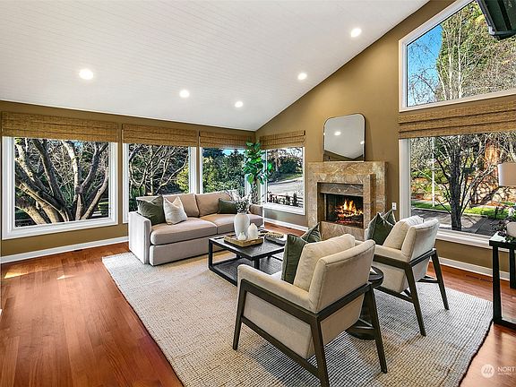 Elegant design & NW contemporary details converge in this sophisticated home, offering both comfort & functionality. Delight in light-filled living with soaring cathedral ceilings, walls of built-in bookcases & renovated spaces throughout. A functional floor plan w/primary suite up a half flight of stairs. 2 bedrms & 2.5 bath on main & 4th bedrm, bath + rec room downstairs in daylight basement. Add features include AC, epicurean kitchen, primary suite w/views of Olympics from deck + 2 car garage. Situated on iconic Magnolia Blvd, this beautifully & newly landscaped park-like grounds will delight. Perfect for entertaining, as well as a peaceful oasis for relaxation! Just minutes from the vibrant Magnolia village & beautiful Discovery Park.