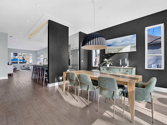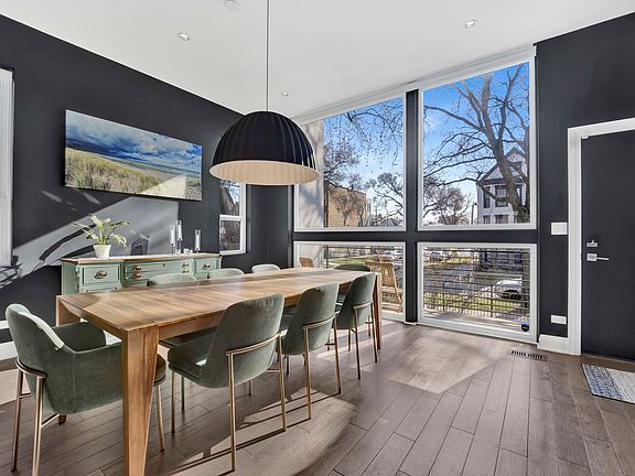 This magnificent 5-bedroom, 3.5-bathroom, spacious residence, on an extra-long lot, represents the pinnacle of refined urban living in the coveted Logan Square/Avondale corridor! Soaring 10-foot ceilings and thoughtfully placed Design Within Reach lighting create an immediate sense of grandeur throughout the expertly designed interior. The expansive kitchen serves as the heart of the home, featuring professional-grade stainless steel appliances including a new Miele dishwasher with auto-open technology and the game-changing separate full-sized refrigerator and freezer - perfect for entertaining! Natural stone countertops and matching backsplash create an elegant aesthetic, while a generous island with comfortable seating and an under-counter wine refrigerator adds both functionality and style. A California Closets-designed walk-in pantry elevates the functionality of this culinary haven. The flowing floor plan showcases a generous dining area and a separate breakfast nook, offering versatile spaces for both formal and casual gatherings! Oversized picture windows frame beautiful tree views throughout. The upper level hosts three bedrooms, anchored by an impressive primary suite featuring a massive customized closet and the convenience of a full-sized washer and dryer nearby. The spa-inspired en-suite bathroom boasts floor-to-ceiling glass, elegant 3x6 stone panels, a double shower, and a floating double vanity. The luxurious hall bathroom continues the home's upscale aesthetic with its floating double sink vanity and a fully tiled tub/shower combination, perfect for family and guests alike. One of the additional bedrooms, currently configured as a distinguished home office, particularly benefits from the natural showcase of expansive windows framing beautiful tree views. The lower level presents an entertainment paradise with its stylish family room, modern wet bar, full-wall cabinetry, and dedicated wine refrigerator, plus two additional bedrooms. Premium finishes include California Closets throughout, designer window treatments from Shade Store, and a comprehensive SimpliSafe security system. The professionally designed outdoor sanctuary by The Outside Design Studio transforms this residence into a private urban oasis. An expansive cedar deck with privacy screening flows to a striking steel/cedar pergola, while the bluestone patio features both a piped gas grill connection and a Lumcast Bloc concrete fire pit with an aluminum removable tabletop! New gas lines extend to the garage area for additional outdoor cooking options. Landscape lighting creates enchanting ambiance for evening entertaining, while a comprehensive irrigation system maintains the lush grounds effortlessly. Modern conveniences include 240V electric vehicle charging in the garage with built-in storage solutions. The prime location offers quick access to the Blue Line for seamless airport connections and walking distance to an array of beloved local businesses, coffee shops, and fine dining establishments in both Logan Square and Avondale. Experience the epitome of refined urban living in this extraordinary residence - your legacy of luxury awaits!