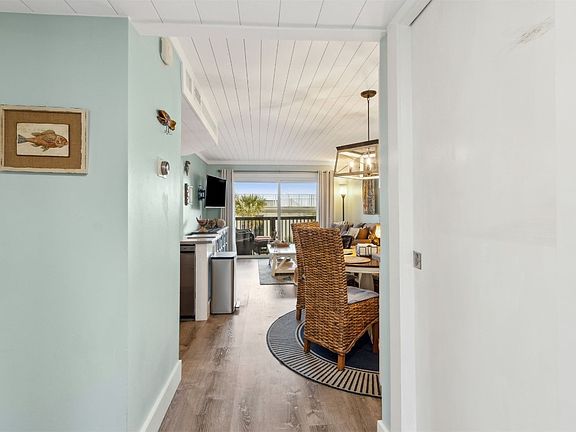 A rare opportunity to own the #1 short-term rental at Sand Dollar Villas, as reported by AirDNA! This top-floor, 2-bedroom, 2-bathroom condo at Sand Dollar Villas is an investor’s dream, generating over $74,000 in annualized gross revenue. Fully operational as a turnkey short-term rental, this unit is sold furnished (with some exceptions), including linens and kitchenware, making for a seamless transition for its next owner. Renovated in 2020, this condo offers stylish upgrades, including custom cabinetry, a tongue & groove ceiling, solid doors, and updated baseboards and trim. The kitchen features black stainless steel appliances, new lighting, and modern cabinetry, while the dining area is enhanced by elegant built-ins and a statement chandelier. Electrical updates include hardwired ceiling fans, USB outlets, and HDTV connections in both bedrooms. Recent major upgrades ensure efficiency and reliability, including a Trane SEER 21 HVAC system (2024), washer/dryer (2024), and hot water heater (2024). The private deck offers ocean breezes and a cozy seating area, and smart home features include a Schlage lock linked to Airbnb. Easily convertible to a full-time residence with customized owner’s closets and storage, this property is the ultimate investment or beachside retreat. Don’t miss your chance to own the top-producing rental in the building!
