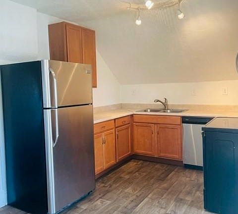 New Bathroom remodel! Newer paint and newer flooring throughout. Kitchen appliances include STAINLESS STEEL refrigerator w/ ice maker, glass-top range, above-range-microwave, DISHWASHER, garbage disposal, etc.