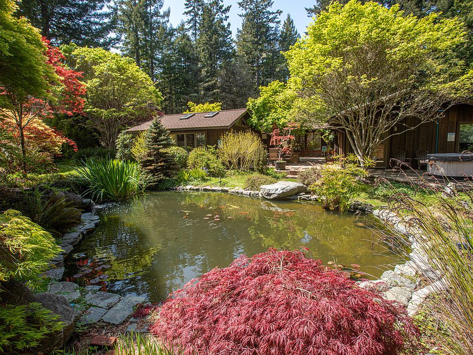 This home is something special! Quality construction w/attention to details. Beautiful use of materials, single story, great floor-plan/flow. Chef's kitchen. 2/large sunny primary beds & a smaller office/3rd bed. 2/baths of generous proportions & luxury fixtures. The entire property feels comfortable, warm & welcoming. 4.51 acres, fully fenced, no slope. Park-like setting w/mature landscaping, garden paths & a Koi Pond. A haven of calm & natural beauty; quiet & private. 2 tours in MLS photos. Attached 2/car garage & a separate woodshop/additional garage space w/1/2 bathroom. A photography darkroom is attached to the back of the shop. Large accessory structure near gated entry. ADU and Jr.ADU potential. Out of coastal zone. Currently a second, well loved, home & successful vacation rental.