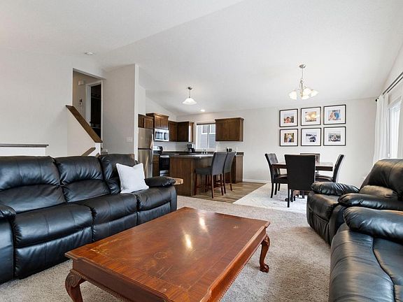 Donât miss out on this beautiful 3 bedroom, 2 bathroom like new home before itâs gone. Situated on a corner lot overlooking a private backyard this home offers an open sun-filled floor plan with vaulted ceiling, spacious living room, center island kitchen and dining room. Guests are welcomed by a covered front porch and large inviting foyer. Upstairs you find all three bedrooms on one level including the private master bedroom with walk-in closet and full bathroom. Unfinished walkout lower level for future finished square footage. Features stainless steel appliances, cultured marble bathroom countertops, 2- car garage, concrete driveway and irrigation system. HOA maintained neighborhood takes care of snow removal and lawn care. Close to the park with baseball field and outdoor ice skating rink.