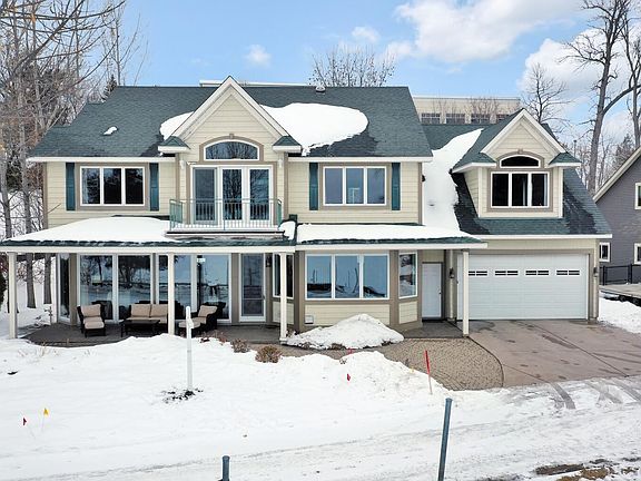 Where to start?? Amazing level lakeshore property with access to 5 major recreational lakes! Great fishing - boating - skiing - or just wonderful cruising! Then there is this stunning home - breathtaking views from all levels with amenities galore including main level in-floor heat, vaulted ceilings, large pantry, extra large garage, main floor master bedroom option, and a beautiful patio and deck to continue to enjoy the scenery! You must see it, to fully appreciate what luxury lake living would be for you! Two additional concrete pads for parking - boat access - or solid storage of your lake toys!