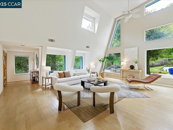 Unique Westside Alamo home located on the pristine street of Lunada Ln, this home features great room living space, updated kitchen with stainless steel appliances, high vaulted ceilings, full bedroom, bath and 1/2 bath on the main floor. Upstairs features a 2nd bedroom with views of Mt. Diablo, third bedroom w en-suite, and plus a 4rd bedroom and full hall bath. Three decks on the home, plus a pool and spa backing to the beautiful Las Trampas Hills located on Westside Alamo with stunning front yard views of the mountains.