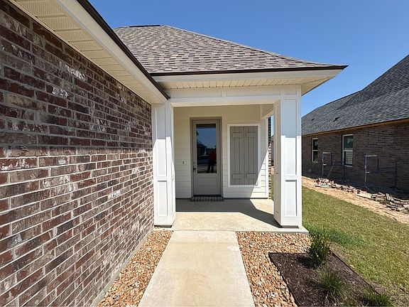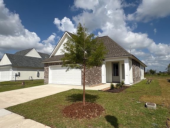 Step into timeless elegance with the Olivia French II floorplan, featuring a charming brick archway entry that sets the tone for the luxury inside. This beautifully designed 3 bedroom, 2 bath home includes high-end details like luxury vinyl plank flooring, New Orleans-style crown molding, and soft-close cabinetry with champagne bronze hardware. The kitchen is a showstopper with fantasy brown granite countertops, stainless steel appliances, a freestanding gas range, and vented microwave/hood combo. Enjoy comfort all year with ceiling fans in every bedroom and living space. The spacious primary suite features a soaker tub, separate shower, and a walk-in closet with built-ins. With up to $7,400 in buyer incentives, a smart garage, tankless hot water heater, and beautifully landscaped yard, this home is the total package!