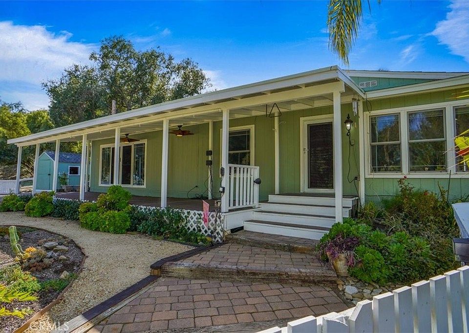 3+2+4 car detached garage+2.15 acres! Hasley Canyon Single Story Newer Roof. Freshly painted. Front porch with ceiling fans Interior Designed Kitchen and Main Bathroom! Kitchen with Quartz counters. Breakfast bar. Newer cabinets Samsung and GE appliances. Wood Burning heatalator. Builtin Entertainment center. Dual pane windows. Newer French doors. Newer installed security screens on front door and French doors. Ceiling fans. Updated bathrooms. Mirrored wardrobe and closet organizes in main bedroom. Double Sinks. Quarts Counters. Steam shower and separate Tub and Shower. Under flooring heating. Retractable awning. Koi pond with water feature. Property line goes past the fence in the back! Fountain. Public Water. Garden boxes. Detached 4 car garage! RV Parking. Two sheds. Mature trees. Completely fenced. Gated entry. RV Access Lots of usable space!