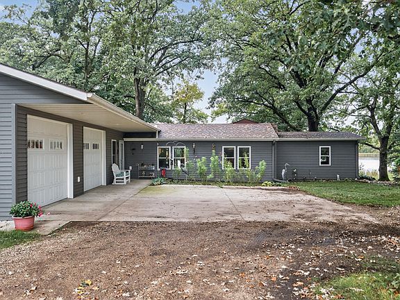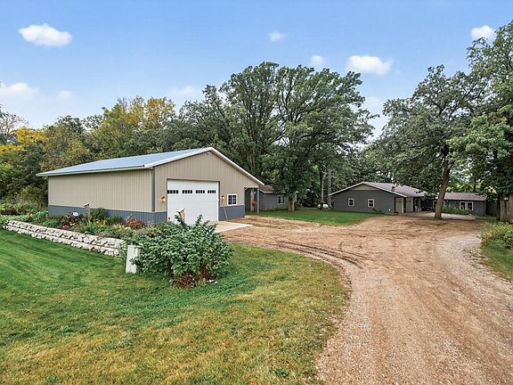Settle into lakeside living on Pelican Lake with this beautiful one level home and it's gradual walk down to the water. The vaulted knotty pine ceiling bring warmth to the open living room, dining, kitchen, and sunroom, where a gas fireplace adds an inviting touch. The gourmet kitchen features custom cabinets, granite counters, stainless appliances, slate backsplash, and an island that's perfect for gathering. The primary suite offers a walk-in closet and a spa-like bath with rain shower, sauna, and jetted tub, while the separate half bath adds convenience. A craft room doubles as a non-conforming bedroom, and the heated, finished garage makes every season easier. Outside, enjoy the composite deck, mature oaks, 150 feet of shoreline, and included dock. There's an additional detached heated/cooled room, and a 48x31 pole barn with concrete floor and covered overhang-ideal for storage, home-based business, hobbies, or lake toys.