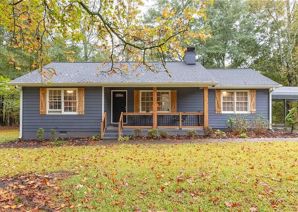 Experience the ultimate in private living in this beautiful renovated home, nestled on nearly 2 acres of land. A private entrance on an asphalt driveway leads to a spacious front yard , while the backyard boasts two bonus sheds. This expanse living room is a focal point, show -casting a stunning brick fireplace with built-in features on either side. The kitchen is a masterclass in design, equipped with stainless steel appliance, quartz countertops , tile backsplash, and ample counter space. A large flex room adjacent to the kitchen offers versatility, perfect for use as keeping rm, family rm, or dinning rm. Additional features include separate laundry rm,owner's suite w tile shower quartz countertops ,soft pull draws. Two additional rooms with a full piece upgraded bathroom.  Conveniently located near school;s, shopping , restaurants, and entertainment in loganville and monroe, with NO HOA.
