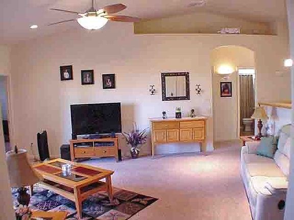 This newer 4 bedroom home has tons of great features! Vaulted ceilings, tile floors, great open floor plan. This home is 1,860 sq ft. Beautiful kitchen w/breakfast bar overlooks a huge livingroom w/patio access. Large master suite w/fireplace, 5 pc bath, jetted tub & amp; walk-in closet. Huge, fenced yard w/covered patio, RV parking area-large enough for cars/RV/boats, central air, 3 car garage & amp; so much more. also has a 50 amp hot tub hookup. Must see!!