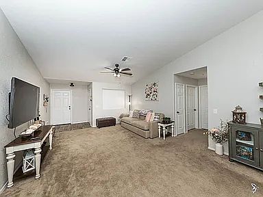 Beautiful 2 bedroom 2 bath sunset mountain villas condominium features large vaulted ceilings with fans and skylight. Spacious open layout in a clean and safe neighborhood. Two car attached garage with remote opener and water softener with reverse osmosis setup. Small private backyard with concrete throughout and covered patio with community park directly across the street. Large walk in pantry, walk in master closet and walk in master shower. Separate washer and dryer room . Blinds all throughout as well as window tint on all windows to help keep cool in summer. Close to schools k-college , military bases , and freeway.