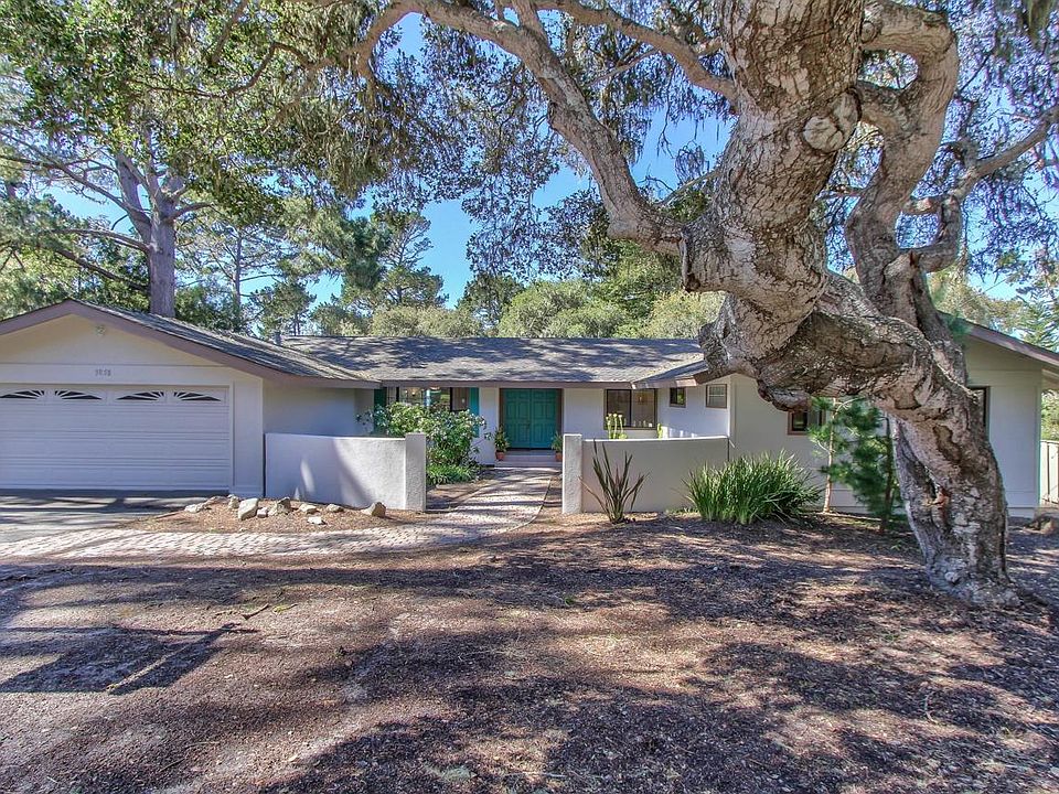 Welcome home to a California classic - a single level, 4 bedroom, 3 bathroom, 2500 sq.ft. home with filtered ocean views. Light, bright & ready for your personal touches. The smart floorplan takes advantage of the ocean views from oversized living room, dining area. The chef in your family will be delighted with enormous space in the kitchen & dining area and large amounts of cabinetry, counter space and an island. A sunroom in the master bedroom is perfect for a fitness area or in-home office. Three additional bedrooms and two full bathrooms are located in a separate wing which also includes a built-in office/homework area each room is spacious with good sized closets. Gather on the deck for your outdoor barbecues and enjoy the spacious, fenced yard which is ready for your landscape design ideas. Recently painted inside and outside, new carpets throughout, new stainless steel refrigerator and many other repairs/upgrades make this home an incredible Pebble Beach value!