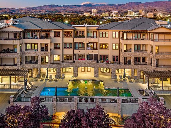 Experience the good life in this sophisticated community overlooking the city and the striking Boise Front. This desirable condo is perfect for right-sizing without sacrifice, located in a prominent community that delivers with a resort-style pool and spa, catering kitchen for your pool deck entertainment, full gym, and club room. Inside your home's stunning gourmet kitchen, you'll enjoy high-end Sub-Zero and Wolf appliances, quality cabinetry, granite countertops, and a spacious walk-in pantry. Well-designed plan features a spacious primary suite with a luxurious, spa-like bathroom, along with a secondary bedroom suite. Fresh interior paint and new Phantom screens add a clean finish, and an extra garage space provides significant value. The office offers a flexible option for a third bedroom.