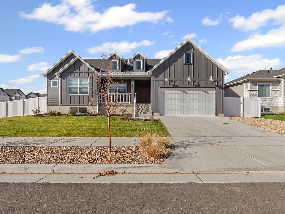 Legitimately better than new! This 1 year old home is one of the few properties in this community with a fully fenced and professionally landscaped backyard ready for you, your kids and pets to enjoy! But wait, theres more, a portion of the basement is finished with a Bedroom and Full Bathroom with a dedicated walkout entrance. Outstanding Grand Family Room with Vaulted Ceilings, Wall of Windows, Modern Fireplace and Upgraded Solid Flooring. Open Concept with the Designer Kitchen. Ceiling Height Cabinets, Solid Surface Countertops, Stainless Steel Appliances and Closet Pantry. Tranquil Primary Bedroom with Tray Ceiling Details and Attached En Suite Spa like Bathroom. Complete with Dual Sink Vanity, Separate Soaking Tub and Step in Glass Shower, and Massive Walk in Closet. Two Additional Main Level Bedrooms and Hall Bathroom. Room to grow in the Unfinished basement area. Extra Tall 2 Car Garage. Expansive Covered Patio. Perfect Location Just a few minutes to Willard Bay, Main Roads and Access to I-15. Square footage figures are provided as a courtesy estimate only. Buyer is advised to obtain an independent measurement.