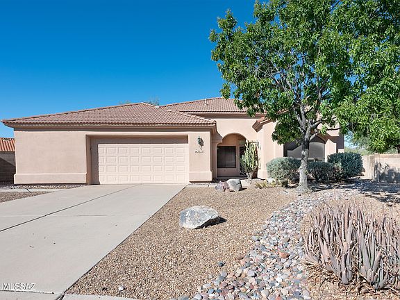 Nestled on a generous corner lot with breathtaking, unobstructed Catalina Mountain views, this Canoa home offers a private oasis backing onto the peaceful Tanque Verde Creek. With direct access to the Rillito River Walk and the extensive 130-mile Loop bike trail, outdoor enthusiasts will find themselves perfectly situated to enjoy Tucson's natural beauty.This nearly 2,300 square foot home welcomes you with freshly painted interiors, tall ceilings, and a light-filled, open floor plan that makes every room feel airy and inviting. The spacious master suite provides a relaxing retreat with its garden tub, separate shower, and ample closet space. three additional bedrooms and a second bathroom accommodate family, guests, or a home office with ease.Outside, discover a private backyard designed for true Arizona living. A charming beehive fireplace and water feature create a serene ambiance, complemented by mature landscaping that offers shade and privacy. The two-car garage includes extra space for a workshop, appealing to hobbyists and DIYers alike.