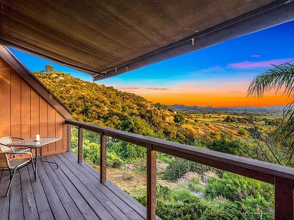 This property sits on 2.74 acres at the end of a quiet cul-de-sac with no through traffic. The three-story home is 2,109 square feet, main house includes two bedrooms, two bathrooms, and a large loft that can function as an office, game room, or additional living space. The first-floor primary suite has a fireplace, private patio, and beautiful views. A detached, finished studio with a full bathroom serves as a third bedroom and can be used as a guest suite, office, or rental unit. Recent upgrades include remodeled kitchen and bathrooms, a new range, solid wood and honed travertine floors, and a tankless water heater. The home features vaulted wood ceilings, stained glass windows, multiple balconies, and outdoor living areas. The property provides space for horses, goats, or cows, and also has potential for a rental unit or an additional dwelling unit (ADU).
