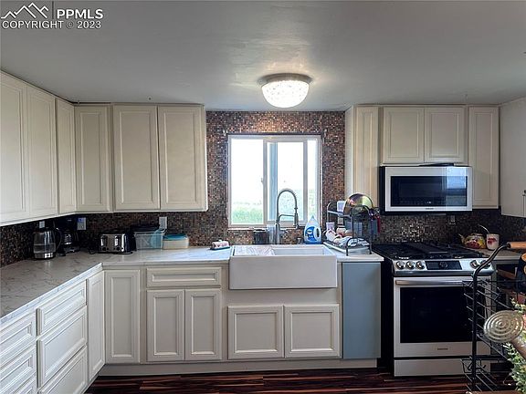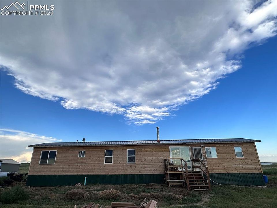 Must see!!! Tranquil property with Amazing views of Pikes Peak , front range and inspiring dramatic sunsets. Relocation Sale is due to family's/illness concerns for this recently greatly improved property on 35 acres. Front 1/3 of land is fenced and gated and rear 2/3s of lot is partially fenced.New exterior cedar siding, new upgraded insulation, new forest green steel skirting. Energy saving new double pane windows , slider and high efficiency wood stove. New electrical panel for main house and newer outlets with some having USB ports.Unique separate cabin/shop offers vaulted ceilings, new electric service panel on shared meter. New large kitchen cabinets, new countertops, new luxury appliances consisting of Samsung Bespoke refrigerator with french doors, beverage center, flex freezer, 5 burner range(grill/griddle), smart dial that learns your cooking, self cleaning convection/air fry, and over range glass micro wave. Large farm sink with grey water system. New copper tub in updated bathroom with fixture allowing for shower. New toilet and vanity sink. Included is Samsung front loader steam/washer dryer. Starlink internet from adjustable self heating satellite with 5G allowing for streaming movies, phones, computers. New luxury vinyl flooring with African wood patterns and new interior paint. Numerous campers, sheds, chicken coop, large platform for greenhouse with covering(not currently installed) consisting of French door, built in gutters, polycarbonate 100% UV protected and fracture /shatter resistant. Roads in the subdivision are plowed and maintained by the Homeowners Association with very reasonable yearly dues. Enjoy this homestead/hobby farm in a location that offers a slower lifestyle and ideal for one who enjoys being surrounded by natural beauty with plenty of wild life and only 45 minute commute to expanding Colorado Springs airport.