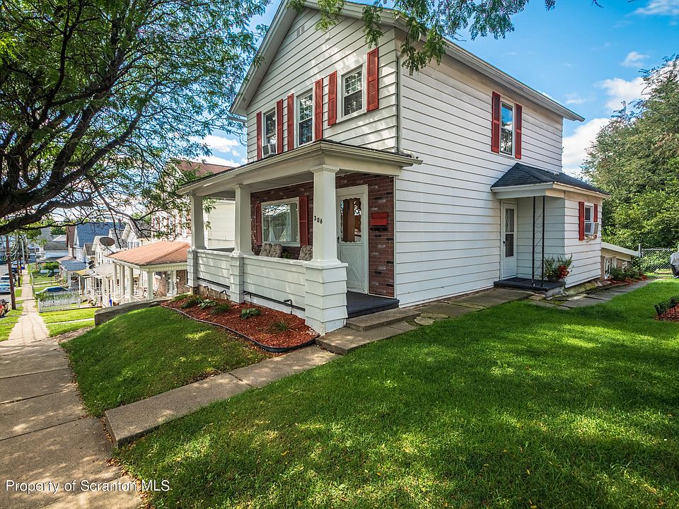 Comfortable 3BR/1BA West Side 2 story. Convenient to Marywood University, Scranton University and the Medical College.Updated full bath and Eat In Kitchen. Some replacement windows and new hot water heater. Enjoy the crisp Fall days ahead from the comfort of your charming, covered front porch. The fully fenced backyard offers privacy to enjoy the above ground pool and surrounding deck. Plenty of off street parking and the attached oversized 2 car garage ( with new rubber roof ) provides abundant storage. (garage has not been used for cars- storage only). Economical gas heat and affordable taxes. Basement is clean and dry and houses the laundry center.