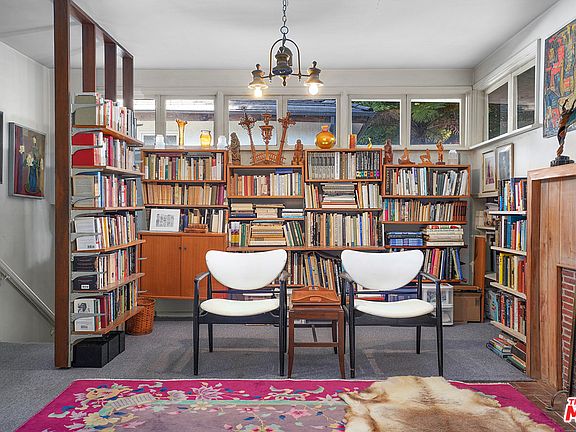 This classic Mid-Century Modern home, architect designed and professionally landscaped is on the market for the first time in 60 years. In the most prime location, North of Montana on a cedar lined street. This creative oasis is surrounded by old growth trees and fruit trees. Set in a curated lightly natural landscape on view from multiple walls of windows throughout the home. Entering into a large open living room and library with an original wood burning fireplace, one flows through a galley style kitchen with ample cabinet space into the heart of the home: A high wood beam ceiling perfectly proportioned family/dining room with a wood burning fireplace. Two walls of windows look out onto a gorgeous patterning of trees, shrubs and flowers. It's like living in the garden with all the comforts of an indoor room. This split-level home has 2 bedroom and a bath downstairs. The upstairs master suite and bath has a large west facing window sliding open onto the an intimate balcony overlooking the garden. Indoor/outdoor living at it's best. Enjoy the ultimate Santa Monica lifestyle from your own private sanctuary.