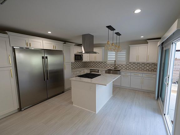 Stainless gas appliances, gas water heater, 72 inch side by side refrigerator.