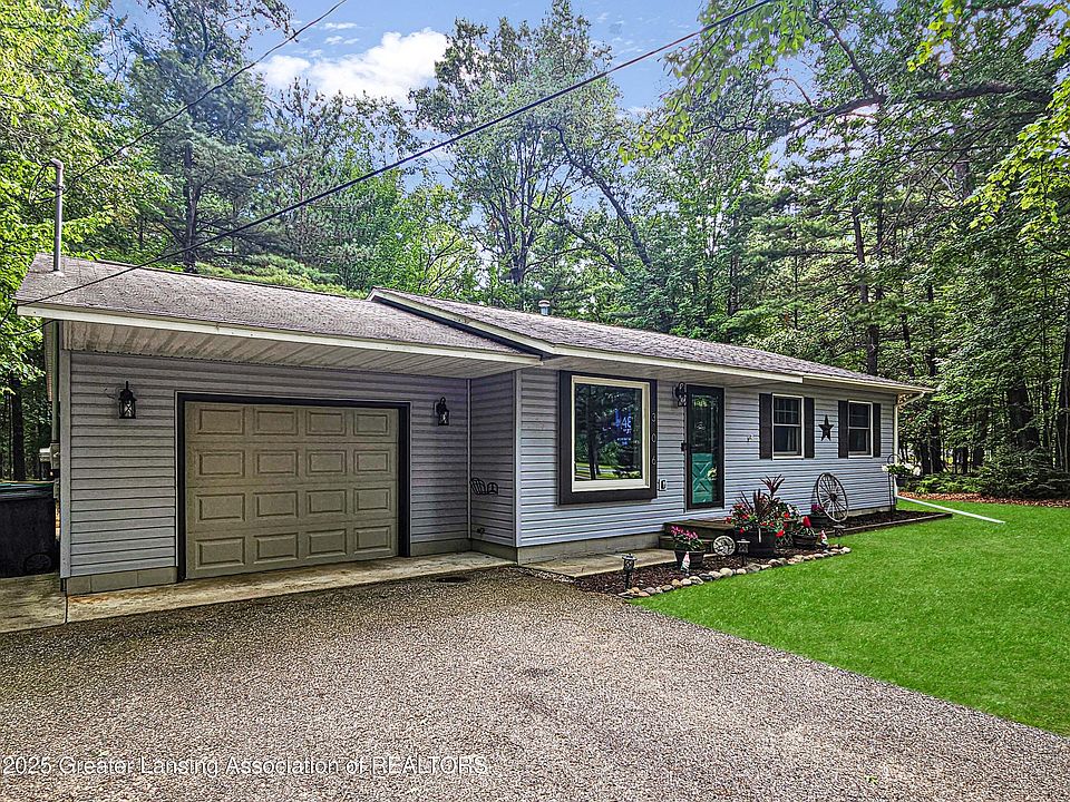 Excellent offering in the desirable Brookside Subdivision. 3 bed / 1 bath ranch home on just under 3/4 of an acre in a wooded, park-like setting. Well maintained and tastefully updated. It has a fully fenced backyard. 1 car attached garage plus a huge 10' x 16' new shed with lofts for all your extra storage. New vinyl flooring and tile inside with vaulted ceilings and great natural light through the large windows. New appliances all stay. Wildlife galore as the backyard of this outer perimeter lot borders the 60 acre Gagahan Nature Preserve. Very private! Deer and Turkey frequent often. Natural Gas & High Speed Broadband Cable internet. Just a stone's throw from Roscommon Public Schools. Schedule your showing today before it's gone.