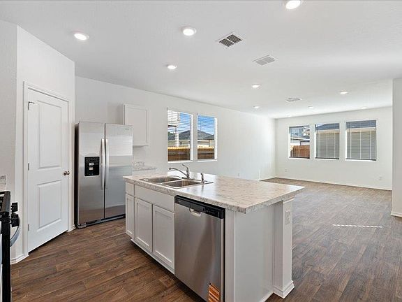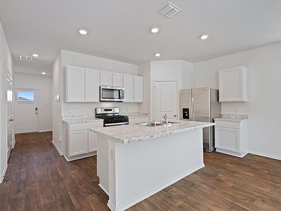 Lease this brand new home in the Valverde community! The Emily floor plan offers 4 bedrooms, 3.5 baths, and 1,695 sq ft of modern living space. The thoughtful layout includes a downstairs guest suite with private ensuite, perfect for visitors or a home office. The open kitchen, dining, and living areas are filled with natural light. Upstairs features the spacious primary suite with walk-in closet and large walk-in shower, plus two additional bedrooms and a full bath. The garage is detached, with alley access. Built in 2025 with energy-efficient features throughout and conveniently located near shopping, schools, and highway 969. A must-see!