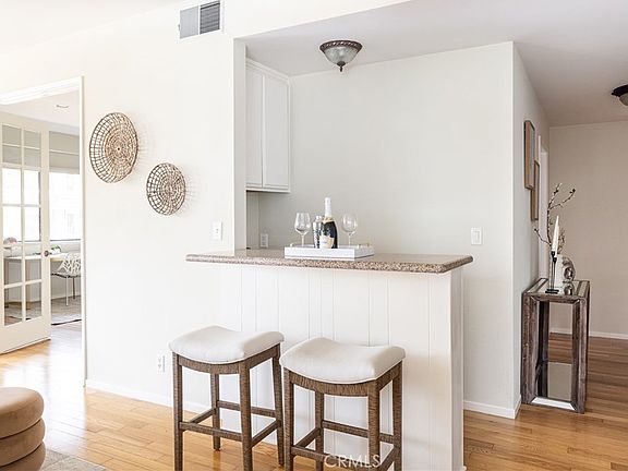 This gorgeous and bright two bedroom, two bathroom, corner unit in the highly desirable Silver Strand area of Marina Del Rey is California coastal resort living at its finest! Feel the ocean breeze from this single-level unit on the northwest side of the complex, away from busy streets. As you enter through the double doors of the formal entry, the open floor plan features a large, bright and spacious living room with a cozy and decorative fireplace, many windows allowing tons of light in, newer wood floors throughout, high ceilings, recessed lighting, entrance to the large wraparound balcony with views of the park-like mall streets, a wet bar with granite counters and storage, and easy access to the eat-in kitchen with newer stainless appliances including a gas range. Large double French doors lead to a second bedroom which could be a perfect office, studio or nursery. The excellent floor plan provides a primary suite complete with a walk-in closet, ensuite bathroom with dual sinks, a separate jacuzzi-style tub and travertine shower. Unit also comes with a laundry closet with side by side washer and dryer, all major appliances, a newer HVAC system, plenty of closet space and additional storage outside of the unit. Enjoy resort style living that includes a year-round heated pool, spa, gym, lighted tennis courts, bike storage and gym. There are two side-by-side parking spaces in the gated community garage very close to the elevator that will take you to the unit, quietly located at the end of the hallway. Conveniently located near beaches, shops, restaurants, famous Abbot Kinney Blvd and the Venice Canals, and silicon beach companies in Santa Monica, Playa Vista, West LA and Culver City. This is a unique opportunity to make this condo your own luxury beach retreat.