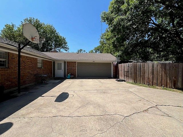 2 car garage and large fenced backyard with patio.